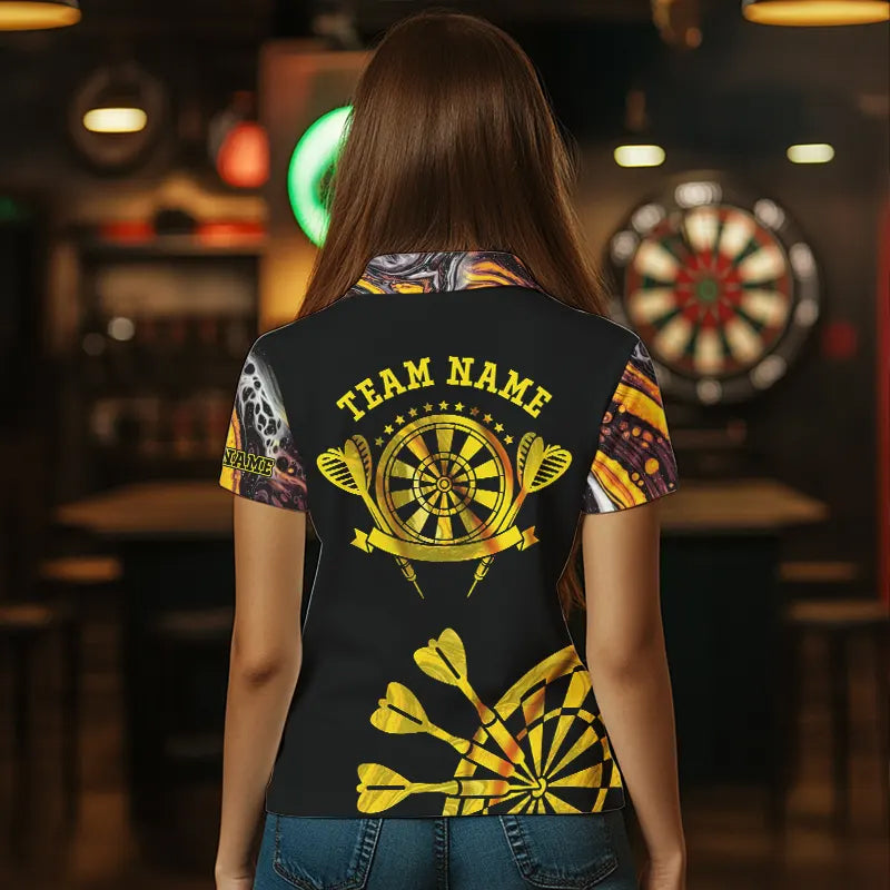 Yellow Golden Darts Tie Dye Polo & Quarter Zip Custom Dart Shirts For Women Glowing Dart Jerseys TDM3709