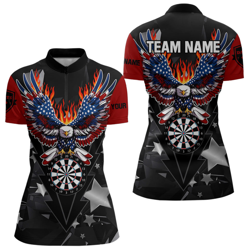 Personalized Fire American Flag Eagle Darts Shirts For Women Custom Pride Patriotic Dart Jerseys TDM3714