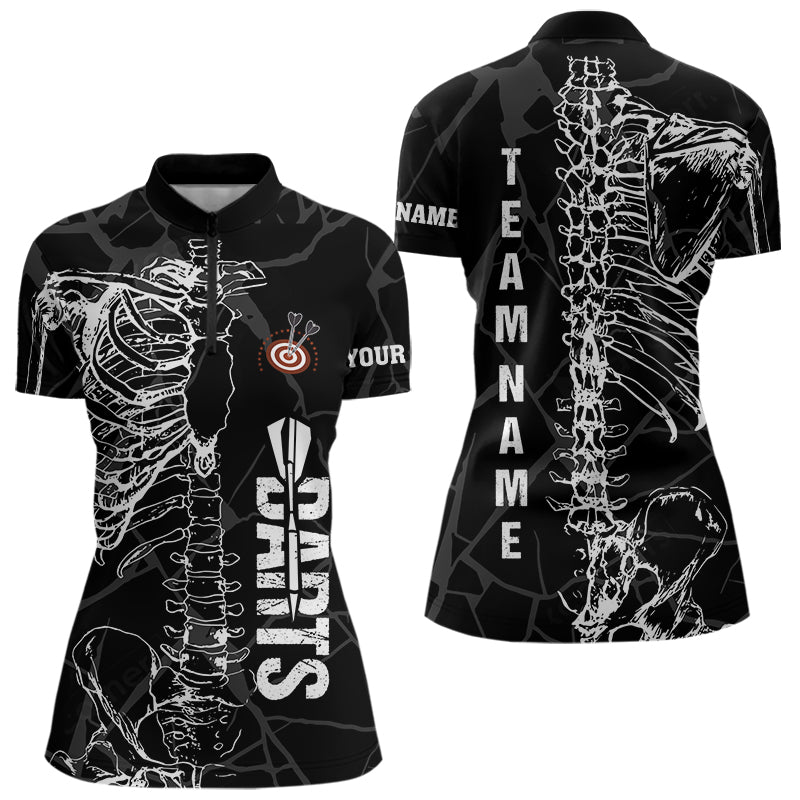White Skeleton Custom Black Grunge Darts Polo & 1/4 Zip, Funny Dart Shirts For Women Dart Jerseys TDM3746