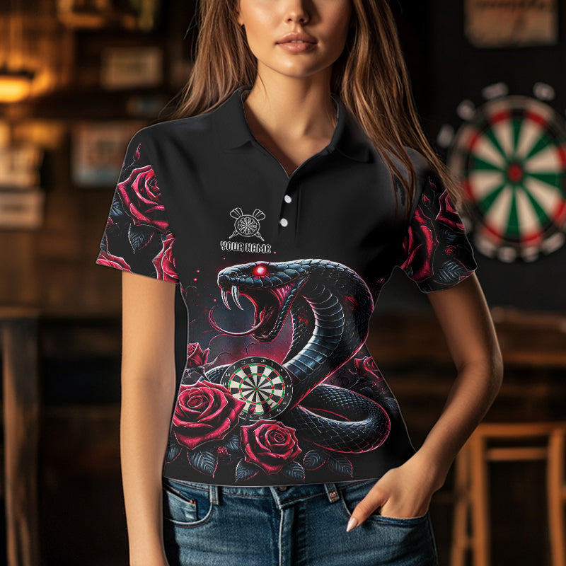 Personalized Rose And Dartboard Custom Cobra Snake Dart Shirt For Women, Dart Jerseys Polo & 1/4 Zip TDM3749