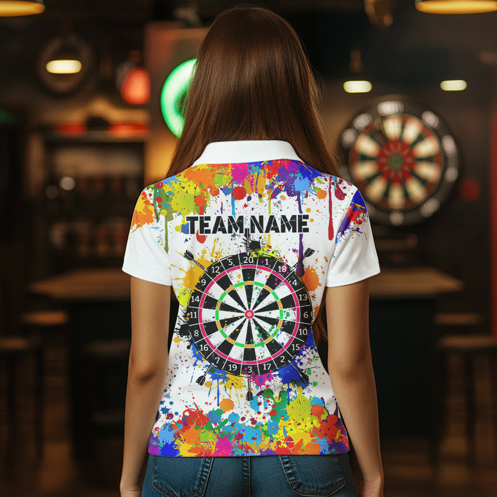 Funny Dartboard Colorful Paint Splash Custom Dart Shirts For Women, Best Team Dart Jerseys |White TDM3755