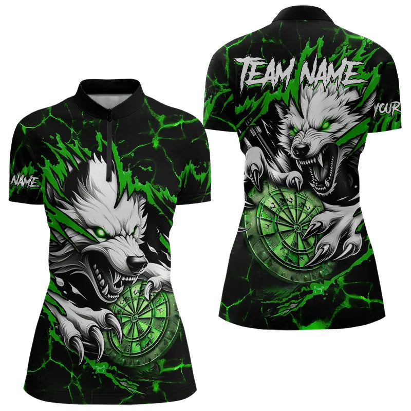 Personalized Wolf Lightning Darts Polo & Quarter Zip Custom Dart Shirts For Women Darts Jersey |Green TDM3773