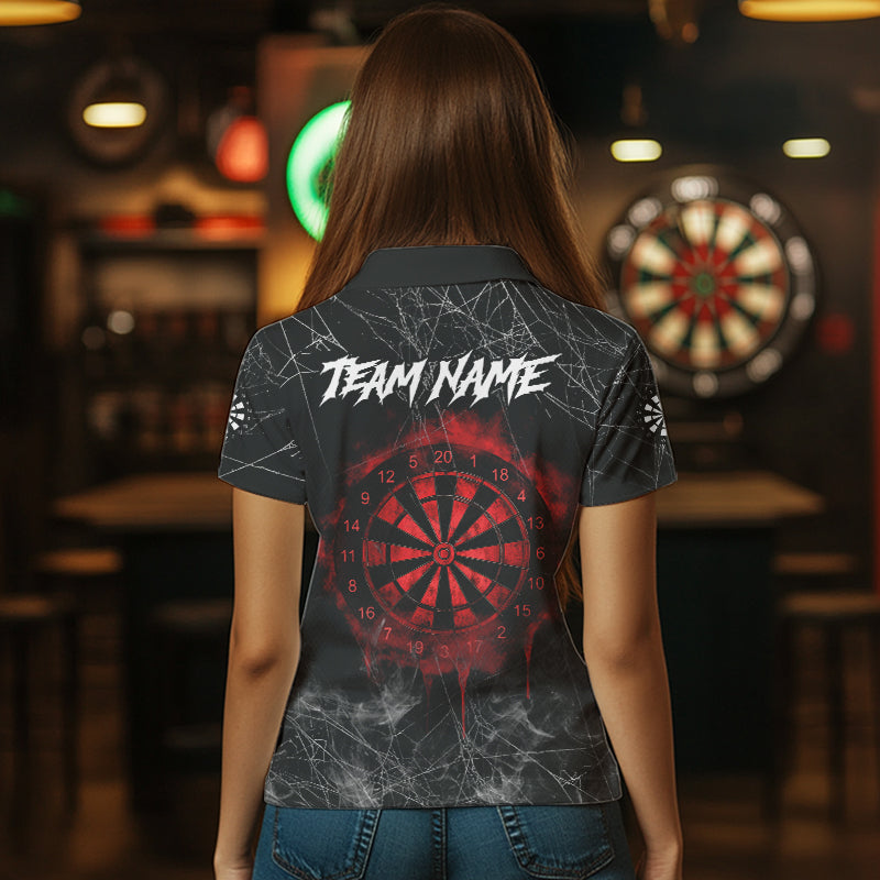 Black And Red Smoke Grim Reaper Funny Dart Shirts For Women Custom Dart Jerseys, Darts Clothing TDM3785