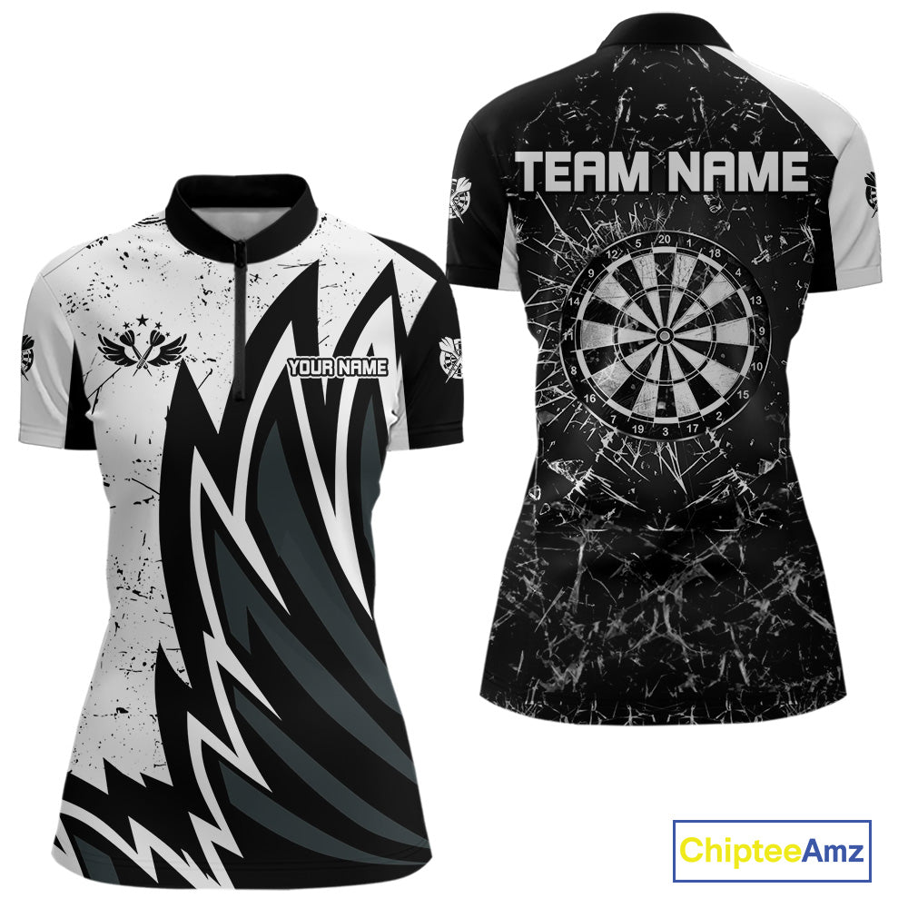 Personalized Black White Break Glass Dart Shirts For Women Custom Wings Dart Jersey Polo & 1/4 Zip TDM3881