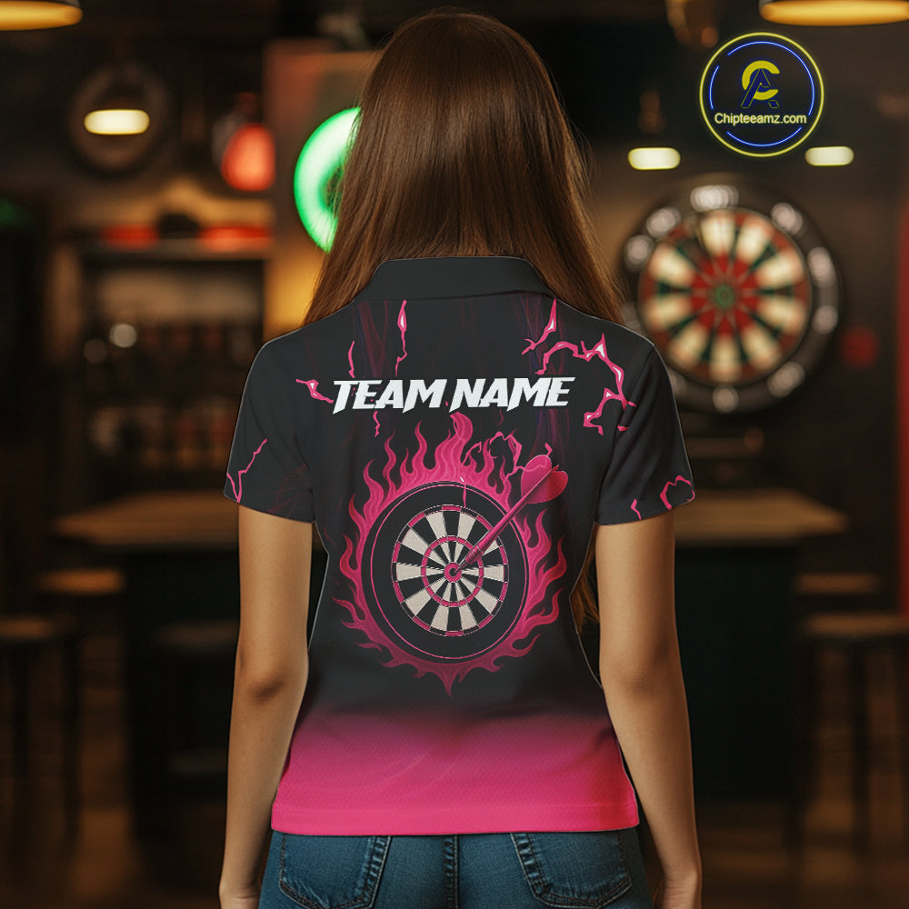 Pink And Black Lightning Arrow Custom Dart Shirts For Women| Darts Team Jersey – Polo & Quarter Zip TDM3965