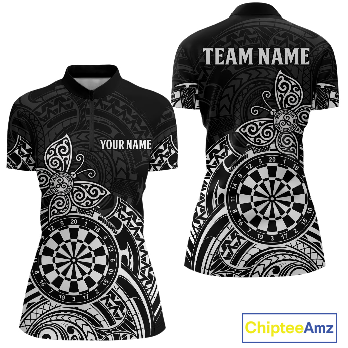 Custom White Black Tribal Dartboard Butterfly Darts Shirts For Women, Darts Team Jerseys Outfit TDM3988
