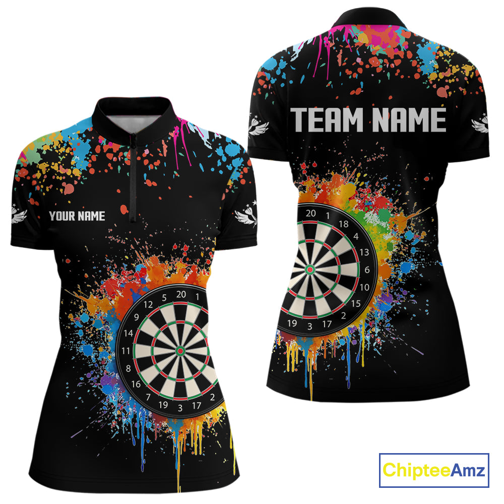 Funny Dartboard Colorful Paint Splash Custom Dart Shirts For Women, Darts Team Jerseys |Black TDM4016