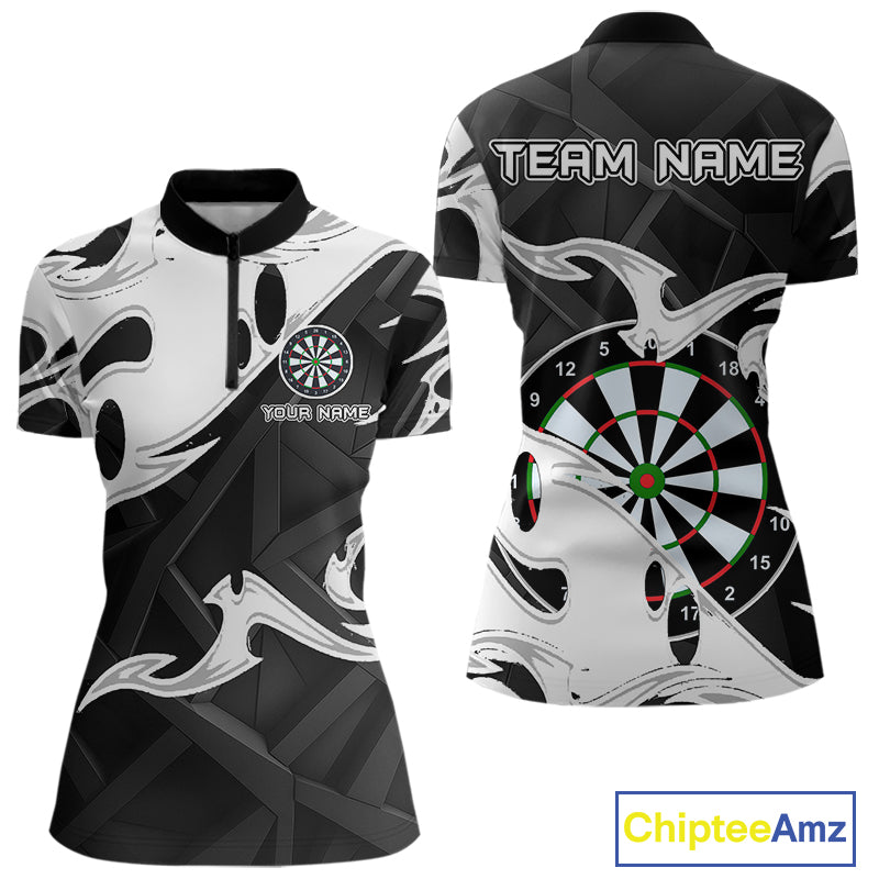 Custom Black And White Tribal Flame Dart Shirts For Women, Darts Team Jerseys Polo & Quarter Zip TDM4286
