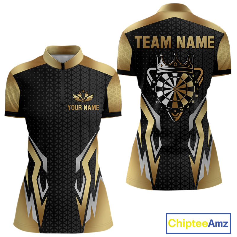 Black And Golden Funny Crown Darts Shirt For Women Custom Darts Jerseys Team Polo & Quarter Zip TDM4324