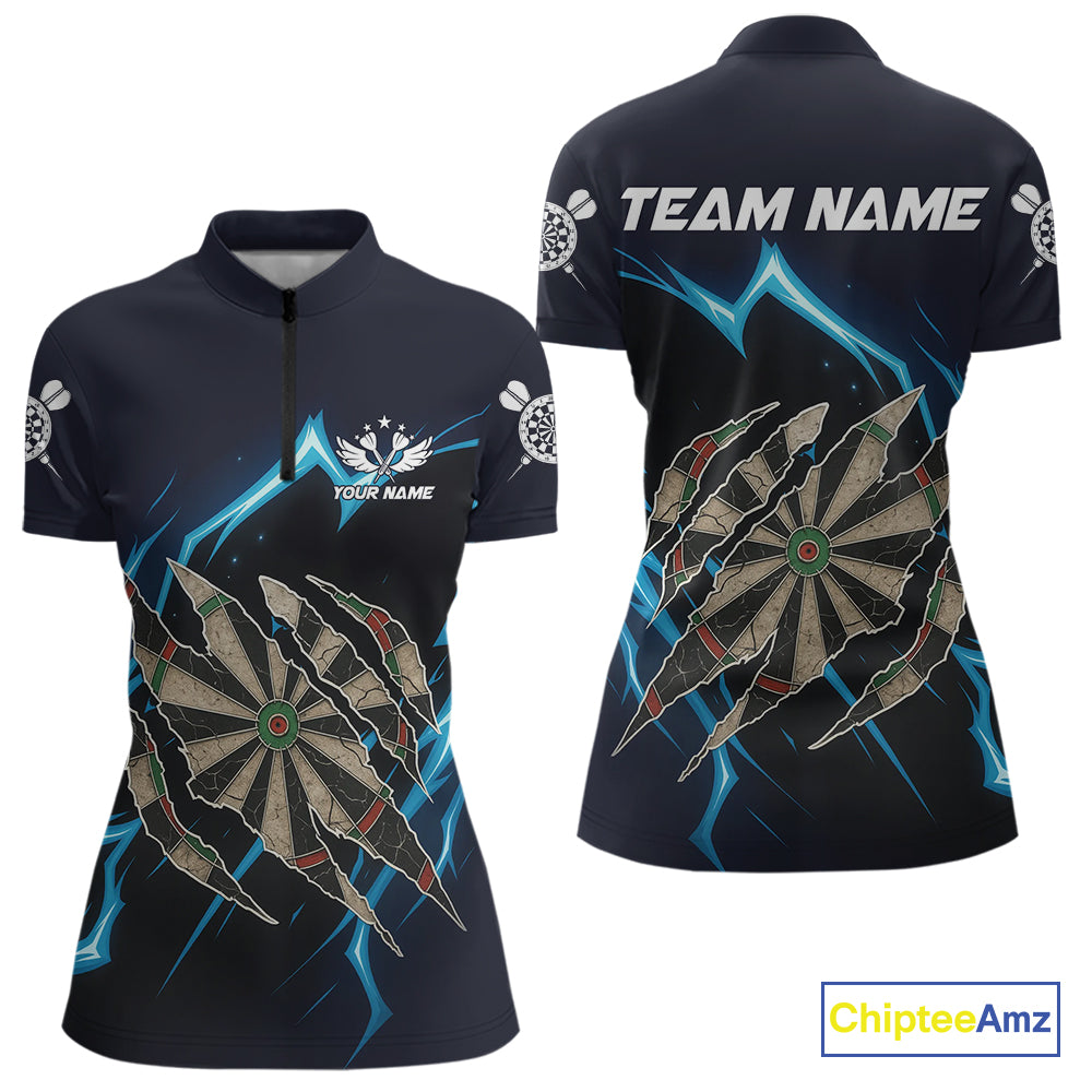Personalized Thunder Lightning Dark Navy Darts Shirt For Women Custom Funny Darts Team Jerseys TDM4336