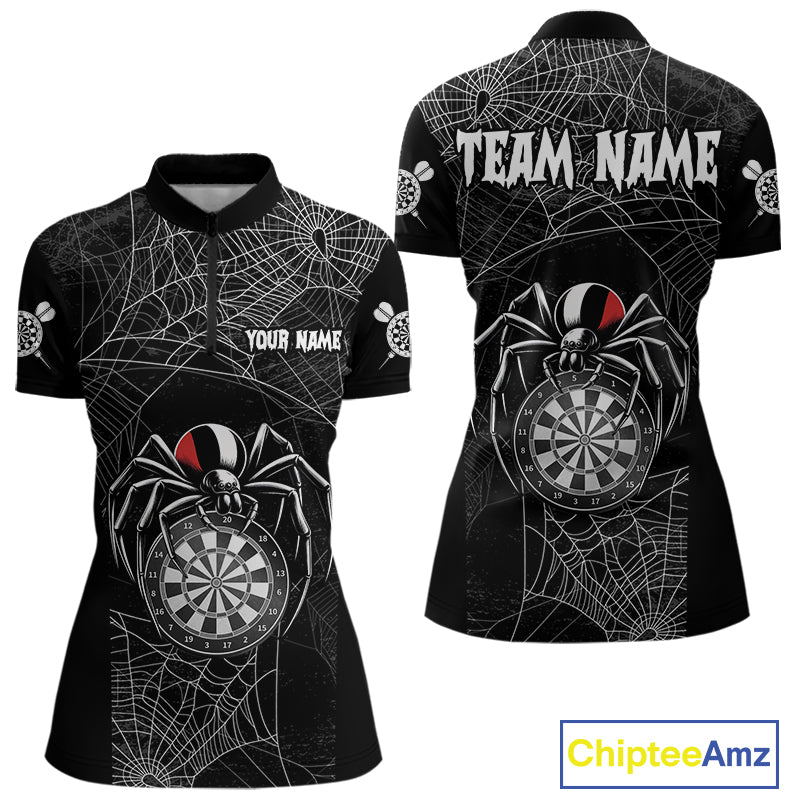 Funny Black Dartboard Spider Web Darts Shirt For Women Custom Halloween Darts Jerseys Outfit TDM4447