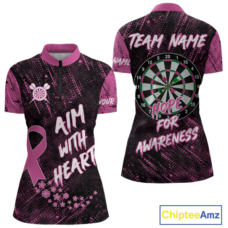 Aim With Heart Pink Ribbon Darts Shirt For Women Custom Breast Cancer Awareness Darts Jersey TDM4469