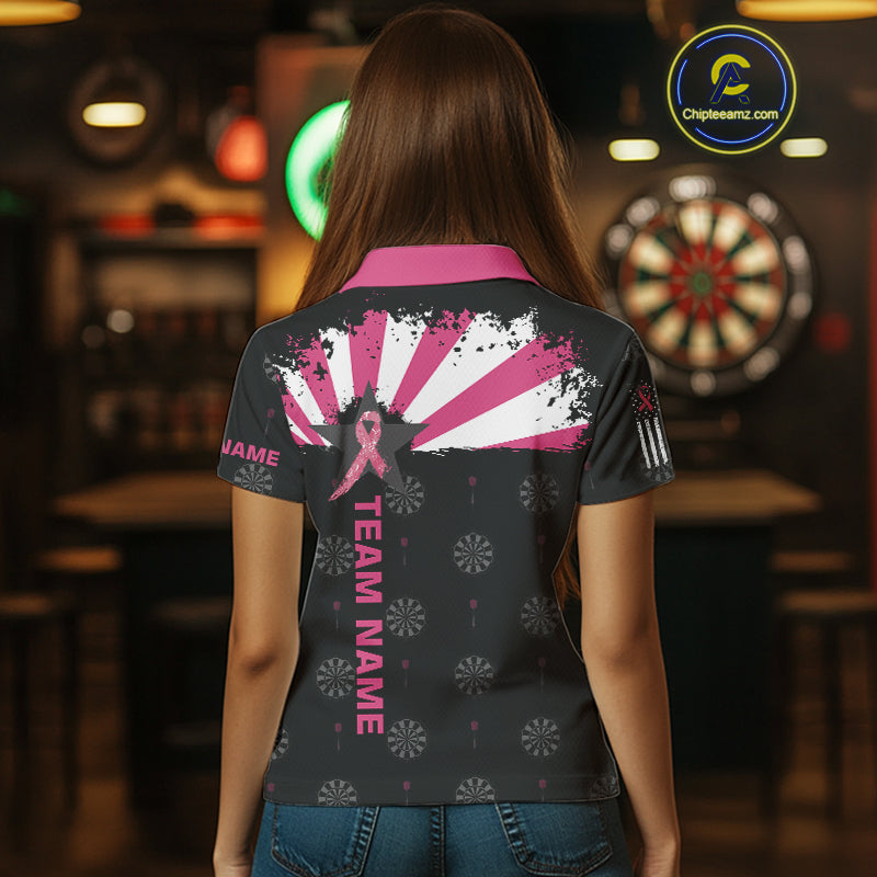 Personalized Pink Ribbon Darts Shirt For Women Custom Breast Cancer Awareness Darts Team Jersey TDM4492