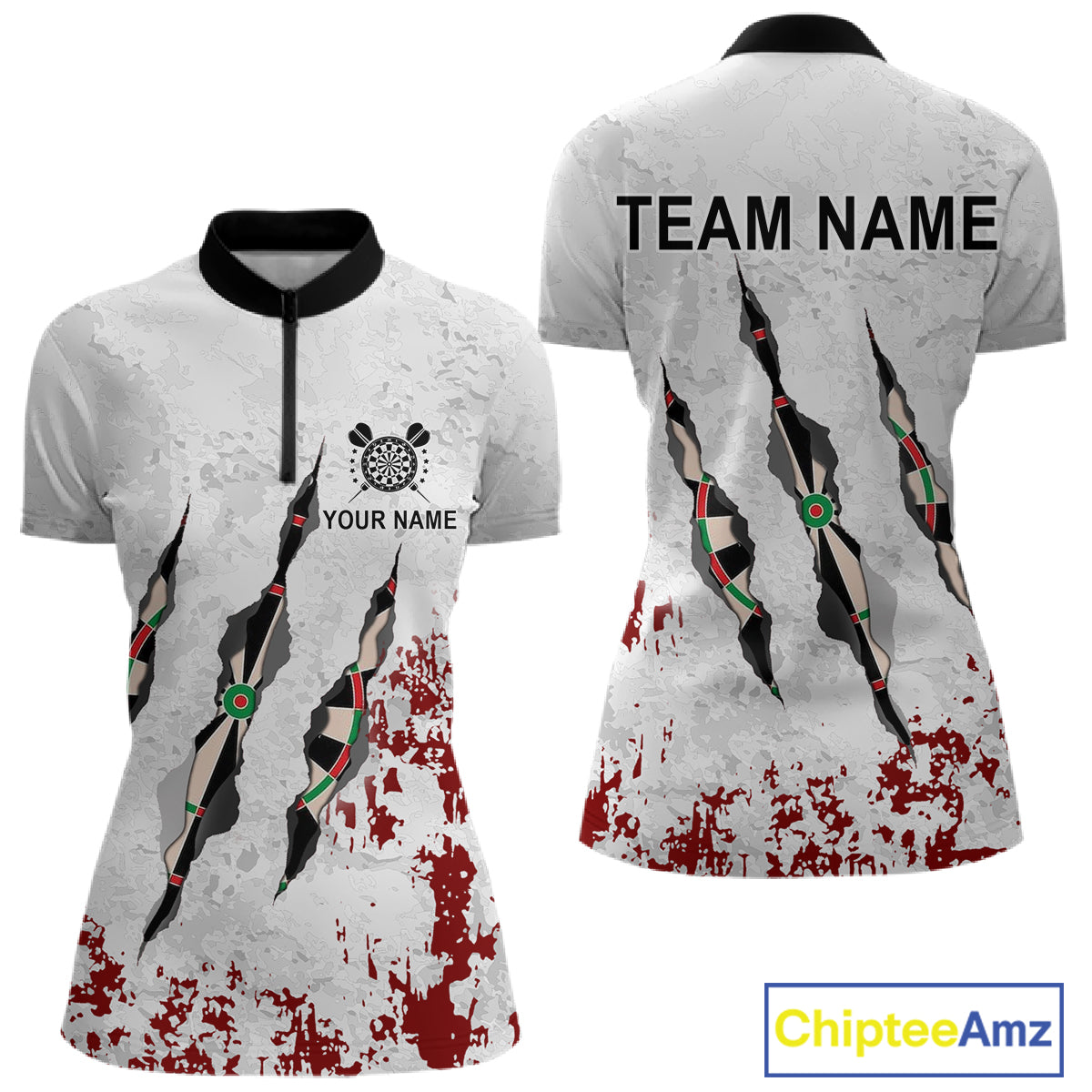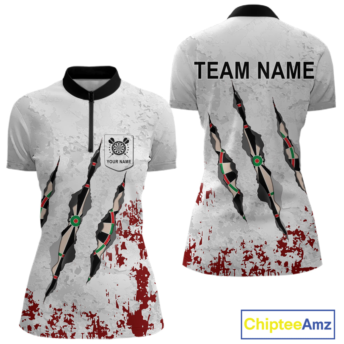 Custom White Red Grunge Dart Shirt With Pocket Option For Women, Darts Jersey TDM4529