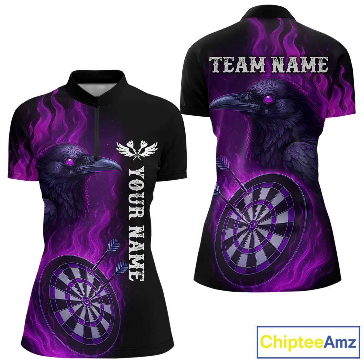 Black And Purple Flame Raven Darts Shirt For Women Custom Halloween Darts Team Jersey Outfit TDM4577