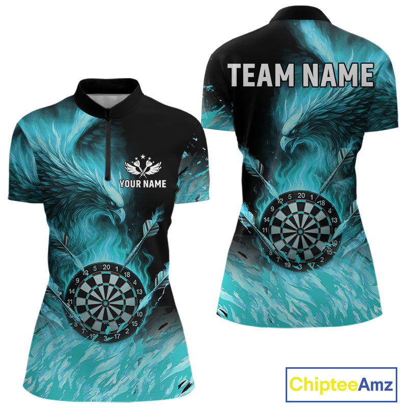 Turquoise Flaming Phoenix Darts Jerseys Custom Darts Shirt For Women, Darts Team Polo & Quarter Zip TDM4662