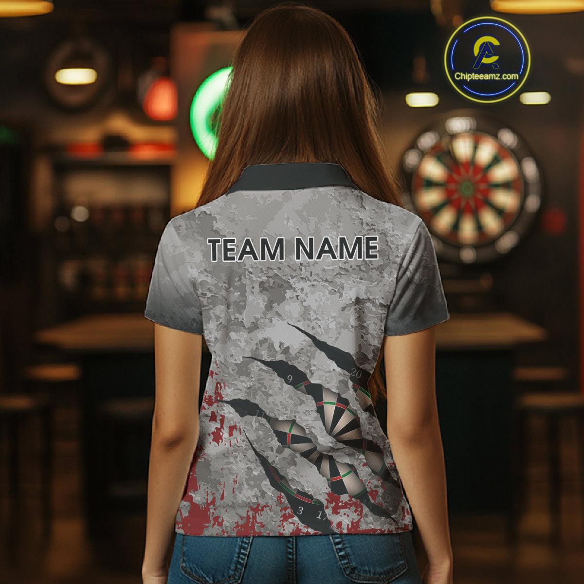 Custom Red And Grey Grunge Darts Shirt For Women, Personalized Darts Jersey Team Polo & 1/4 Zip TDM4995