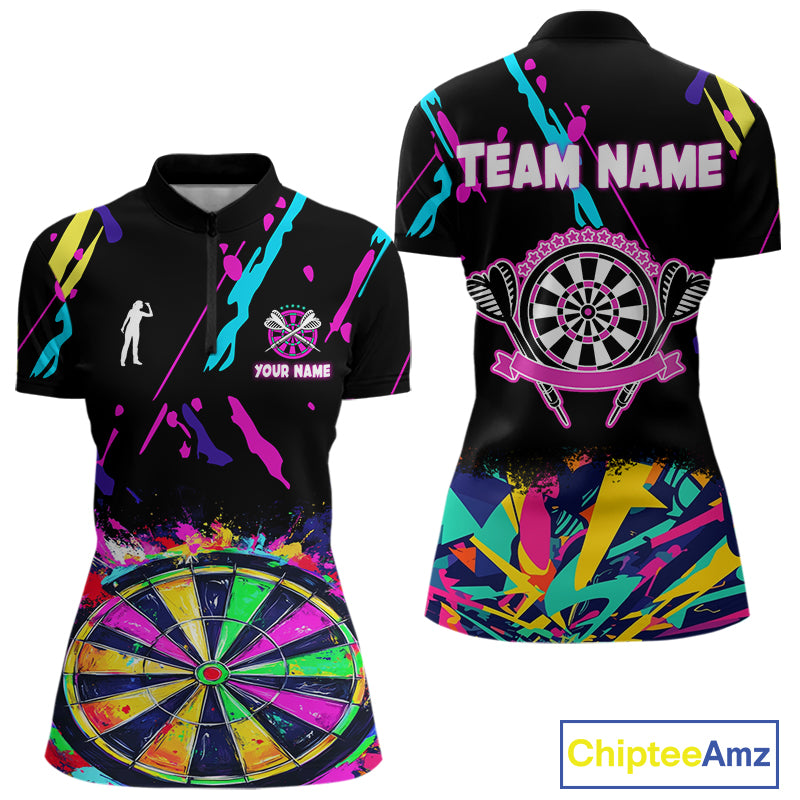 Funny Colorful Splash Dartboard Graffiti Style Darts Shirt For Women Custom Darts Team Jersey Outfit TDM5053