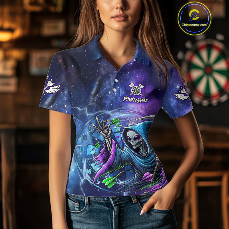 Funny Blue Purple Galaxy Alien Dart Shirts For Women Custom Glowing Dart Jersey Team Polo & 1/4 Zip TDM5075