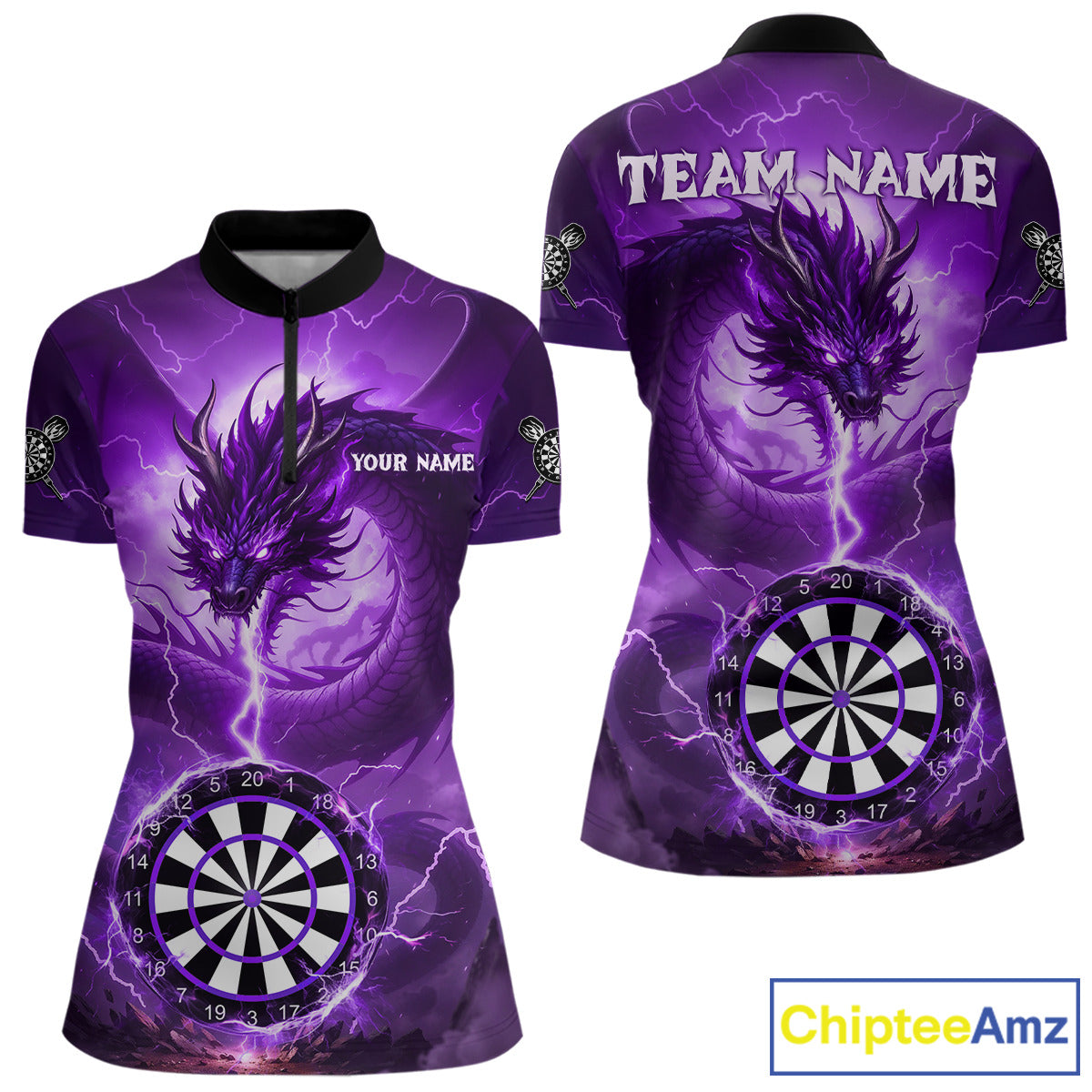 Purple Dartboard Lightning Dragon Womens Darts Shirt Custom Darts Jersey Team Polo & 1/4 Zip TDM5119