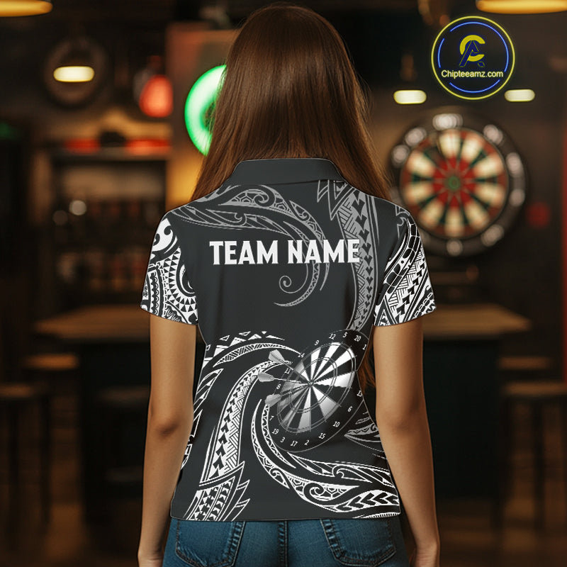 Personalized White Black Tribal Polynesian Womens Dart Shirts Custom Dart Polo & 1/4 Zip Team Jersey TDM5155