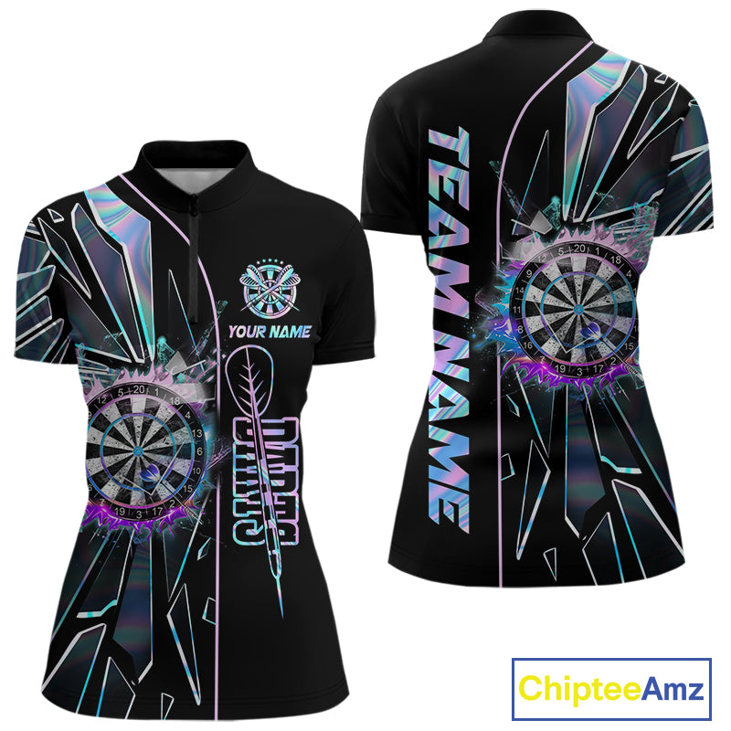 Personalized Holographic Break Glass Womens Dart Shirts Custom Darts Jersey Team Polo & 1/4 Zip TDM5157
