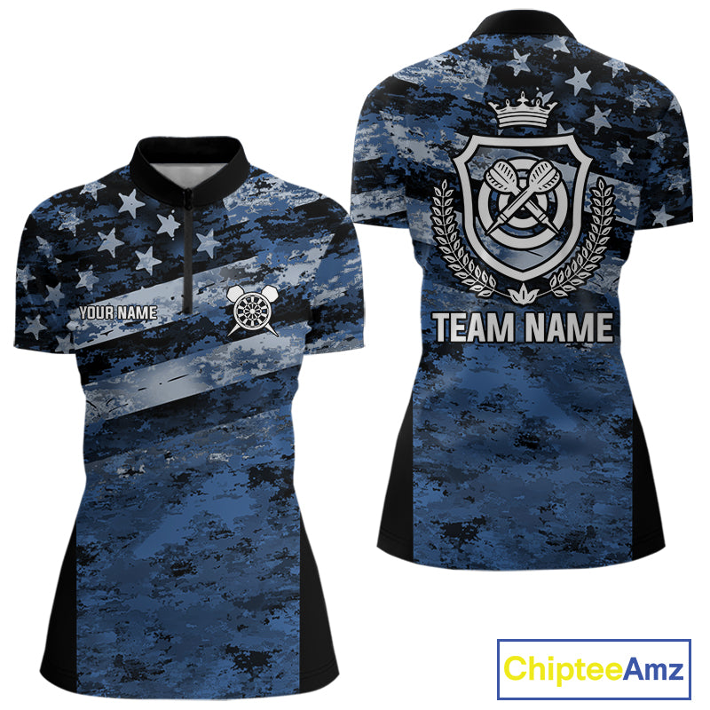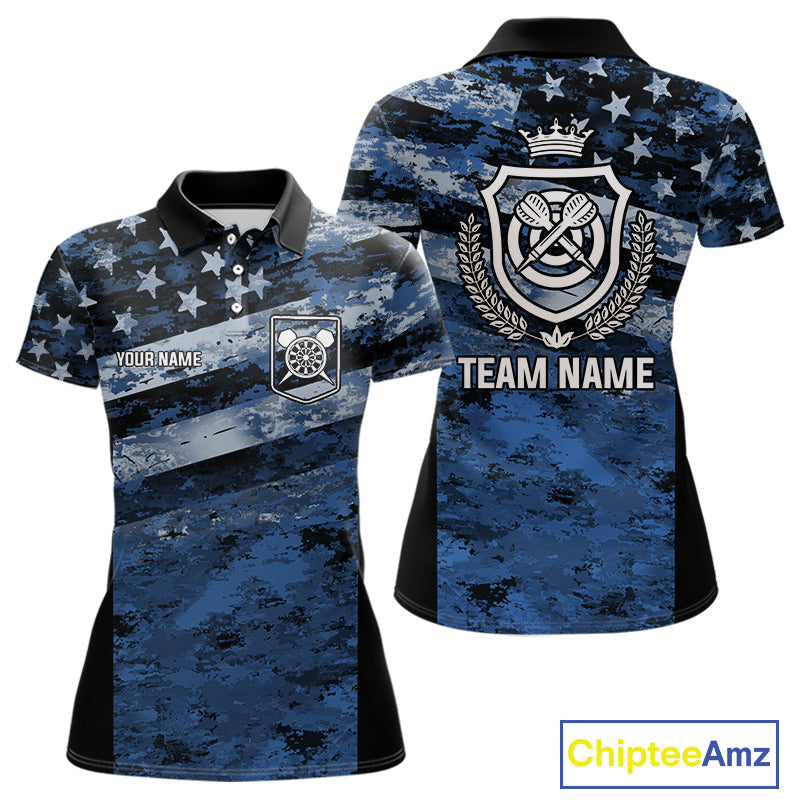 Blue Camo US Flag Dart Shirts With Pocket Option For Women Custom Darts Jersey TDM5275