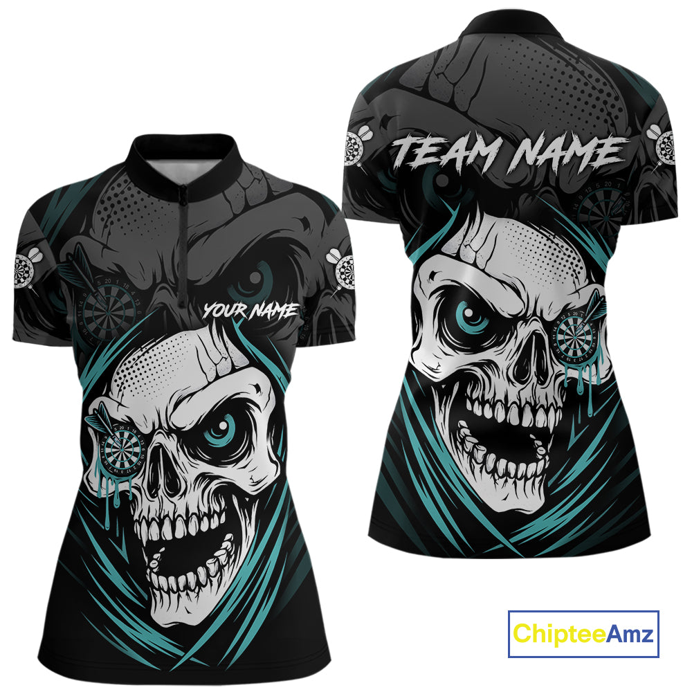 Personalized Funny Skull Darts Shirts For Women Custom Darts Jersey Team Polo & 1/4 Zip| Turquoise TDM5297