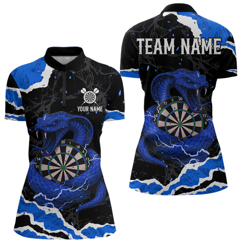 Black And Blue Dartboard Cobra Snakes Darts Polo & 1/4 Zip Custom Womens Darts Shirt, Darts Jersey TDM5338