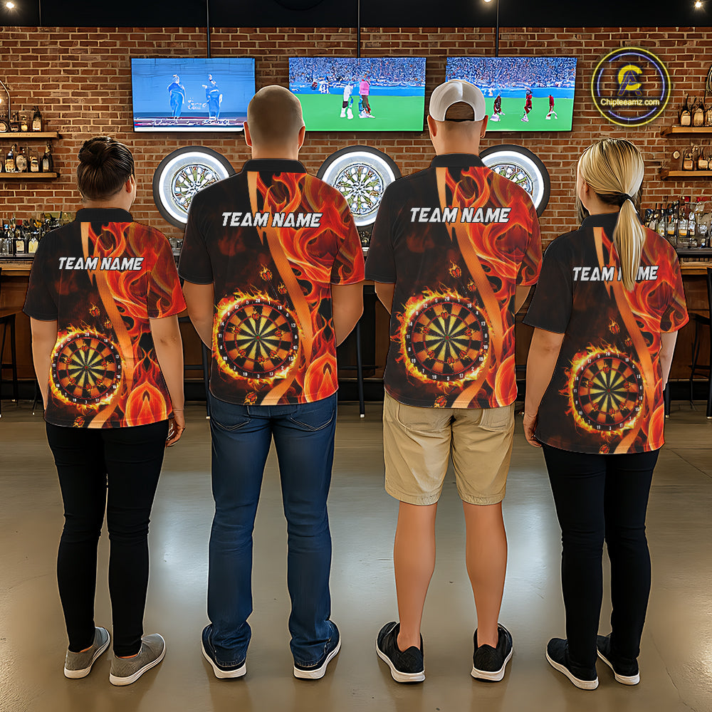 Orange Flaming Dartboard Golden Darts Shirt For Women Custom Darts Jersey Team Polo & 1/4 Zip TDM5351