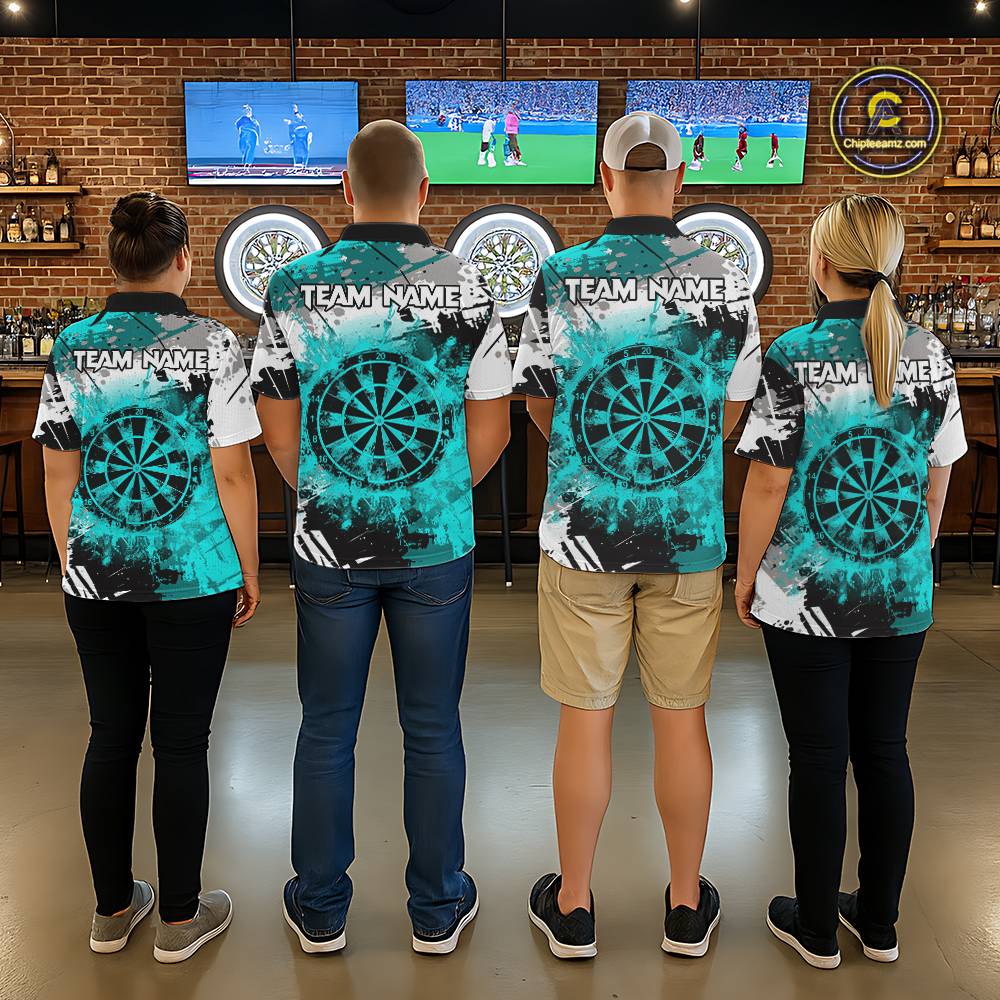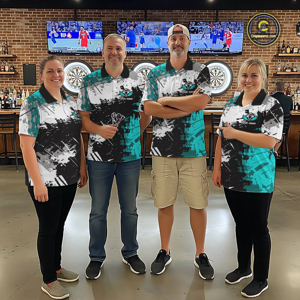 Turquoise Grunge Paint Splash Dart Shirts For Women Custom Darts Jersey Team Polo & Quarter Zip TDM5353