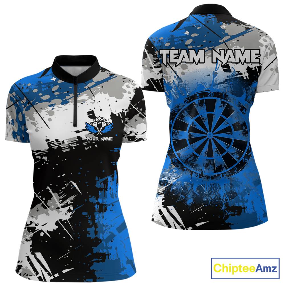 Blue Grunge Paint Splash Dart Shirts For Women Custom Darts Jersey Team Polo & Quarter Zip TDM5354