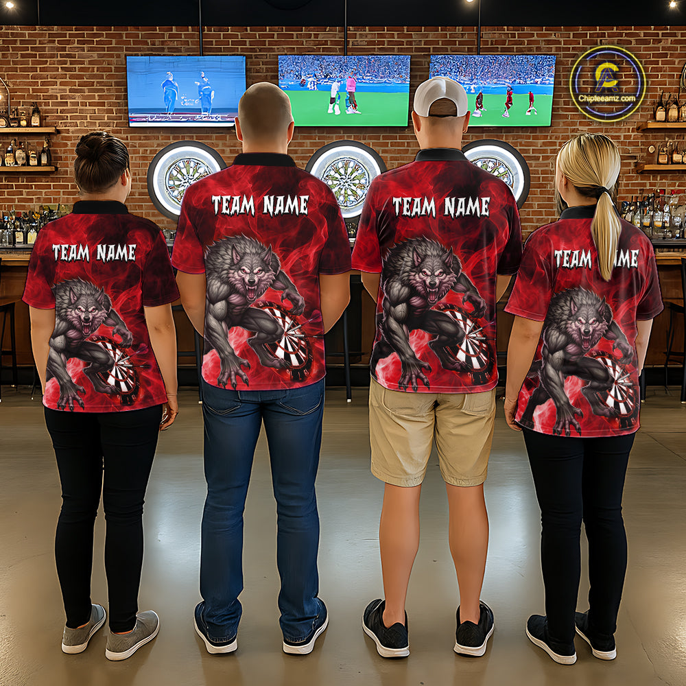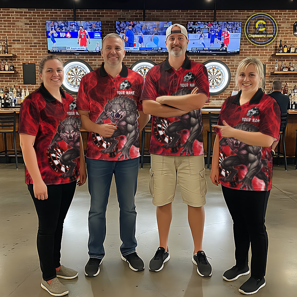 Red Flaming Wolf Darts Shirt For Women Custom Darts League Jersey Team Polo & Quarter Zip TDM5359
