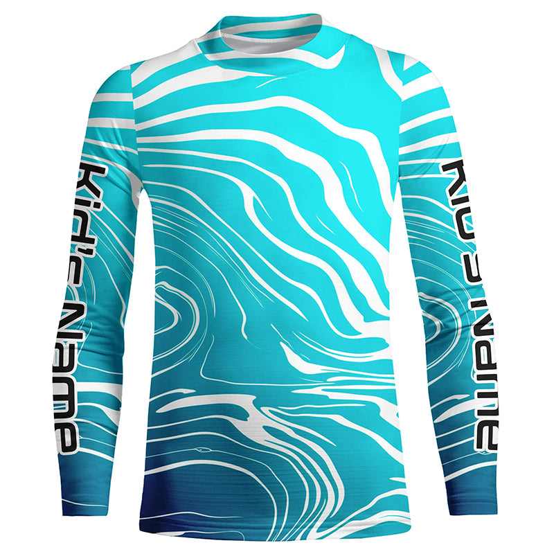Custom Blue Water Camo Long Sleeve Performance Fishing Shirts For Men, Women And Kids IPHW5864