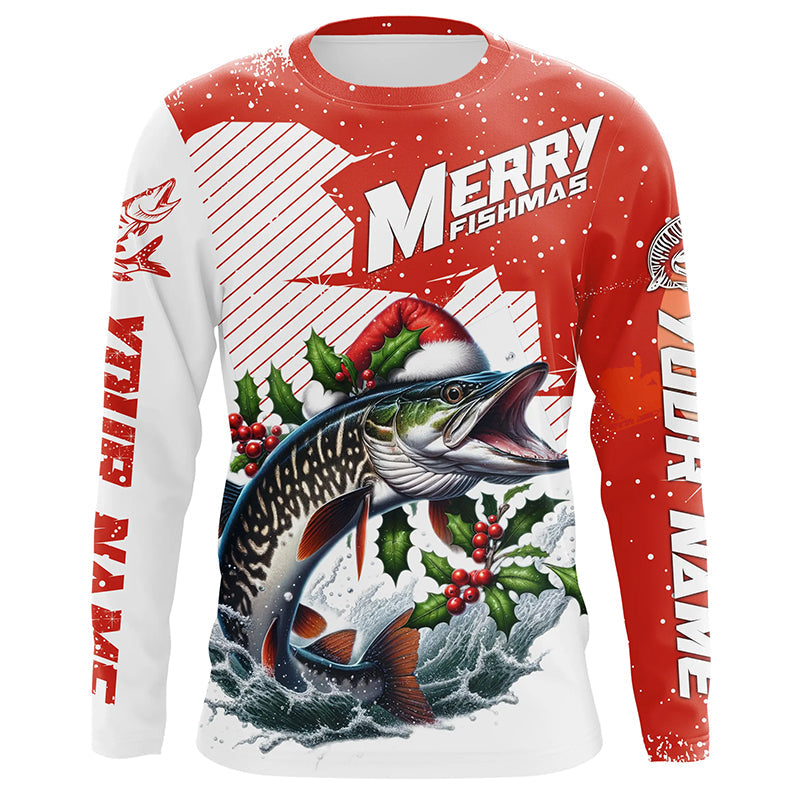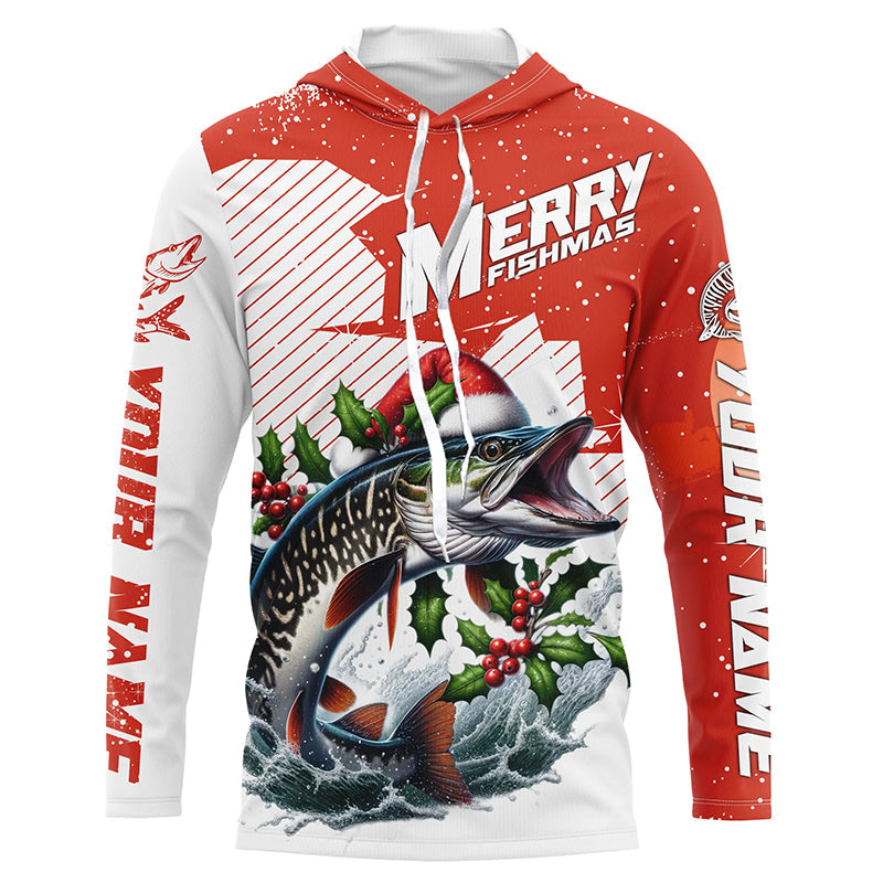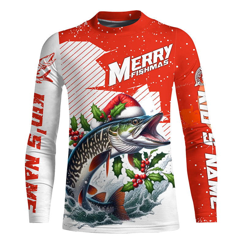 Merry Fishmas Custom Musky Long Sleeve Christmas Fishing Shirts, Personalized Xmas Fishing Gifts IPHW5581