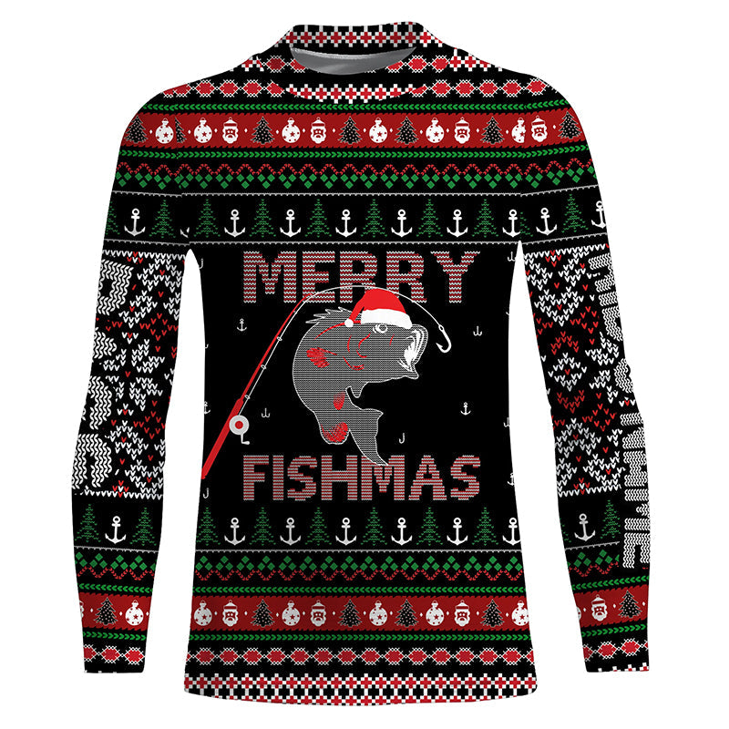 Ugly Fishing Christmas Largemouth Bass Merry Fishmas Custom Name Shirts, Christmas Gift for Fisherman FSD3638