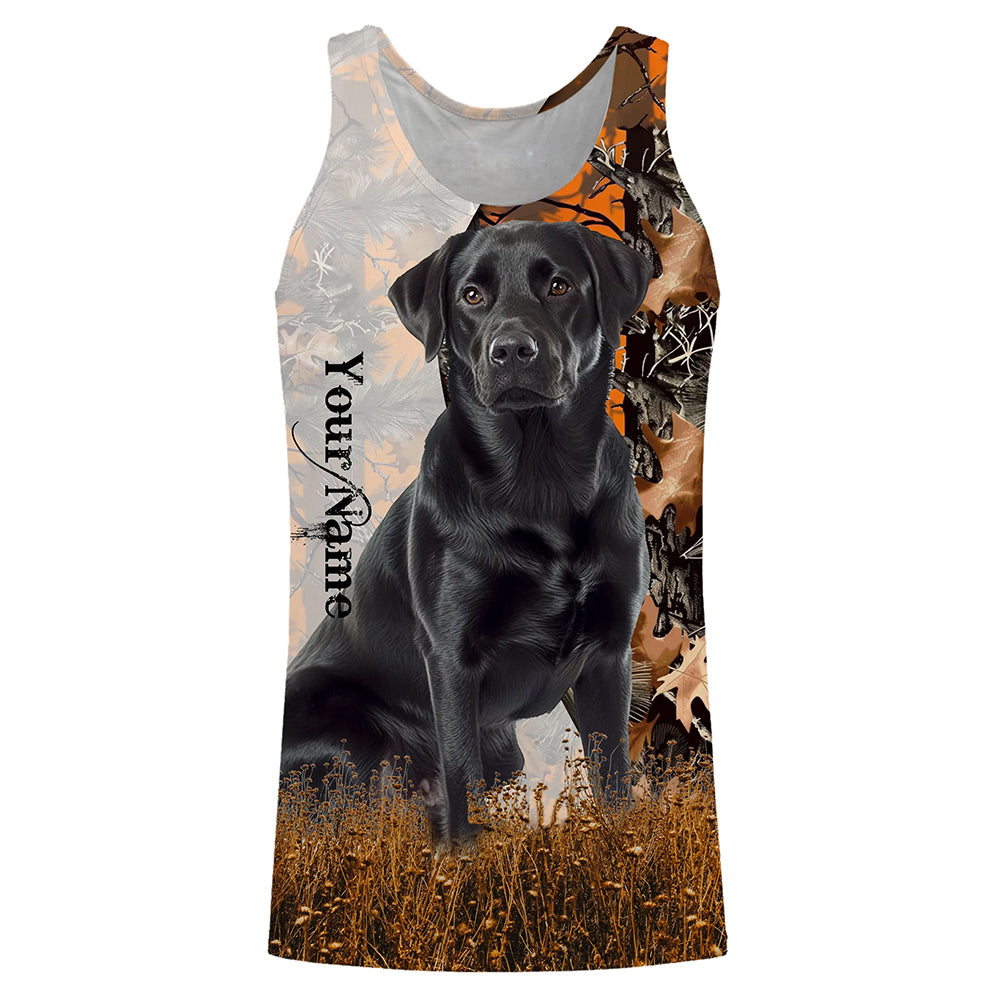 Black Labrador Retriever dog hunting orange camo Custom Name Full Printing Shirts, Labs Hunting Gifts NQS4137