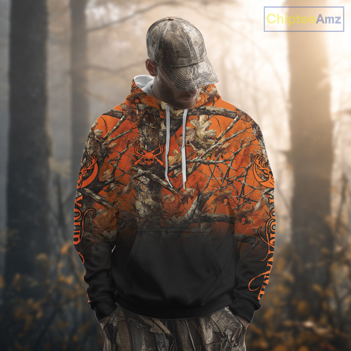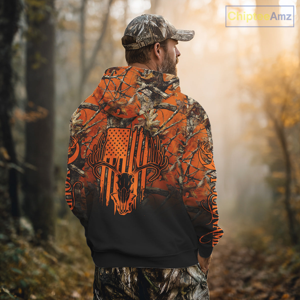 Best Orange Camouflage Deer Hunting Custom Name US Flag Shirts, Deer Hunting Clothes NBT93
