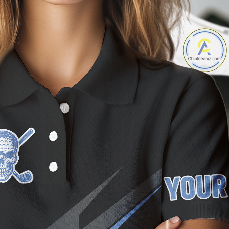 Black and Blue Skull Golf polo shirts For Women Custom Ladies golf tops, Personalized golf gifts NQS10467