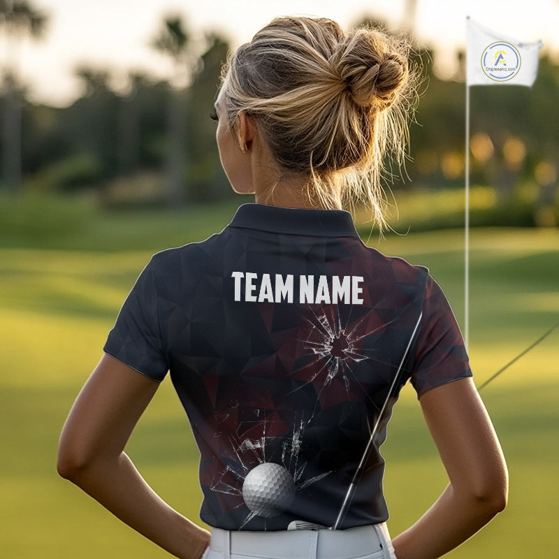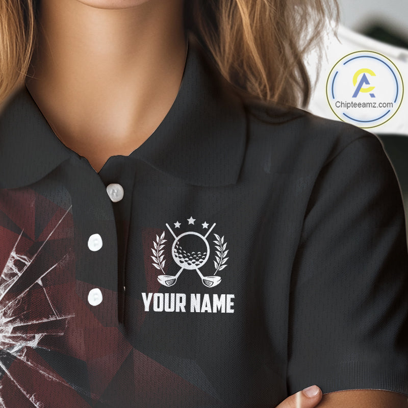 Black and Red Camo Broken golf ball Women Golf polo shirts Custom Team Golf attire for ladies NQS10449