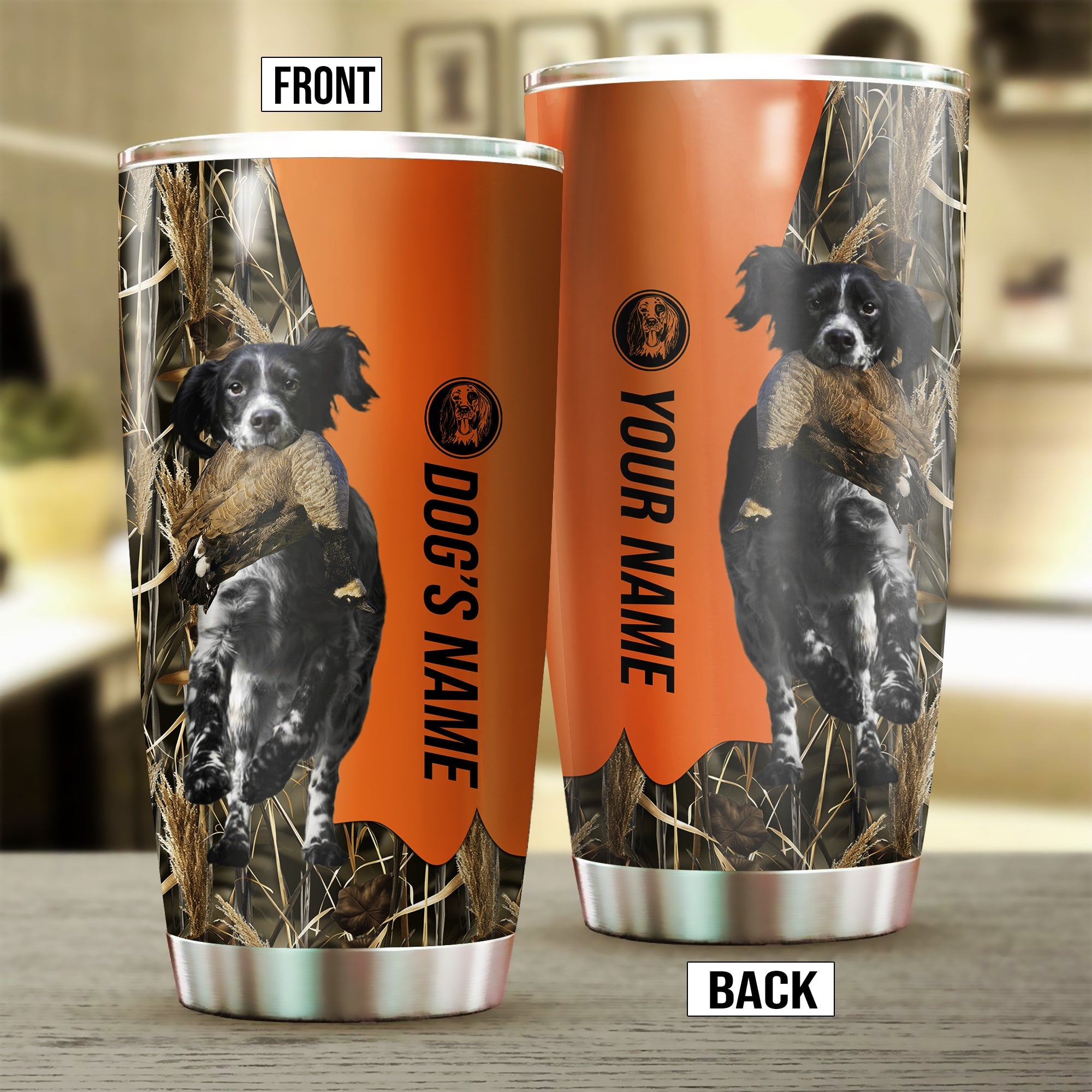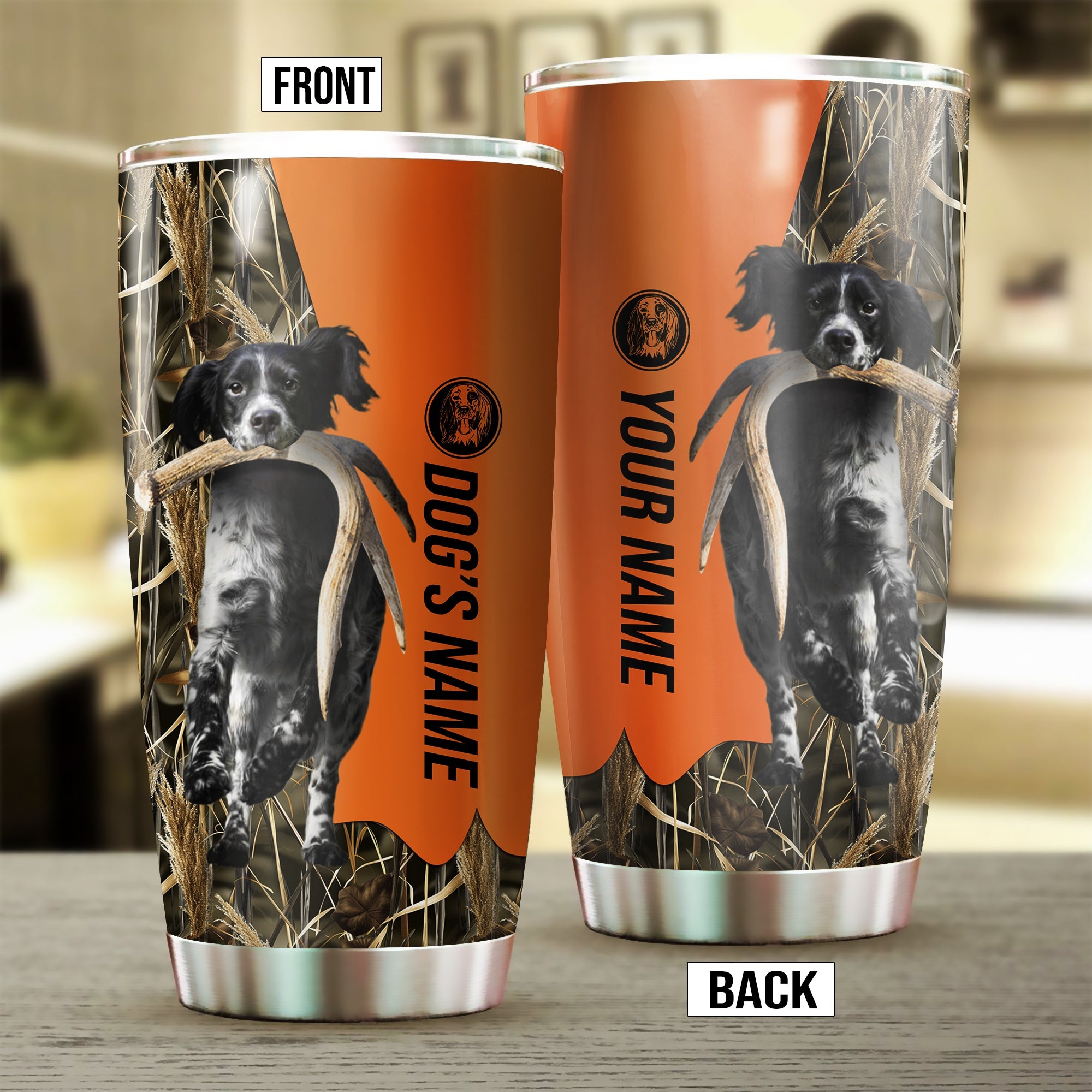 Black and white English Setter Birds & Deer shed Hunting Dog Custom name Stainless Steel Tumbler Cup FSD4330
