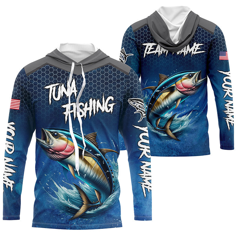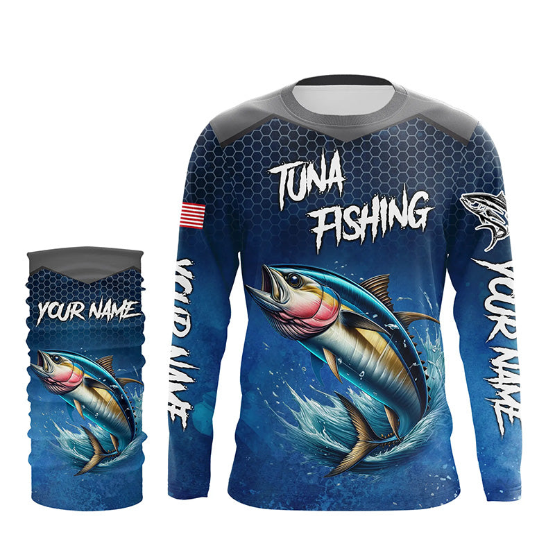 Blue camo Tuna fishing Custom performance long sleeve team Tuna fishing tournament shirts NQS7776