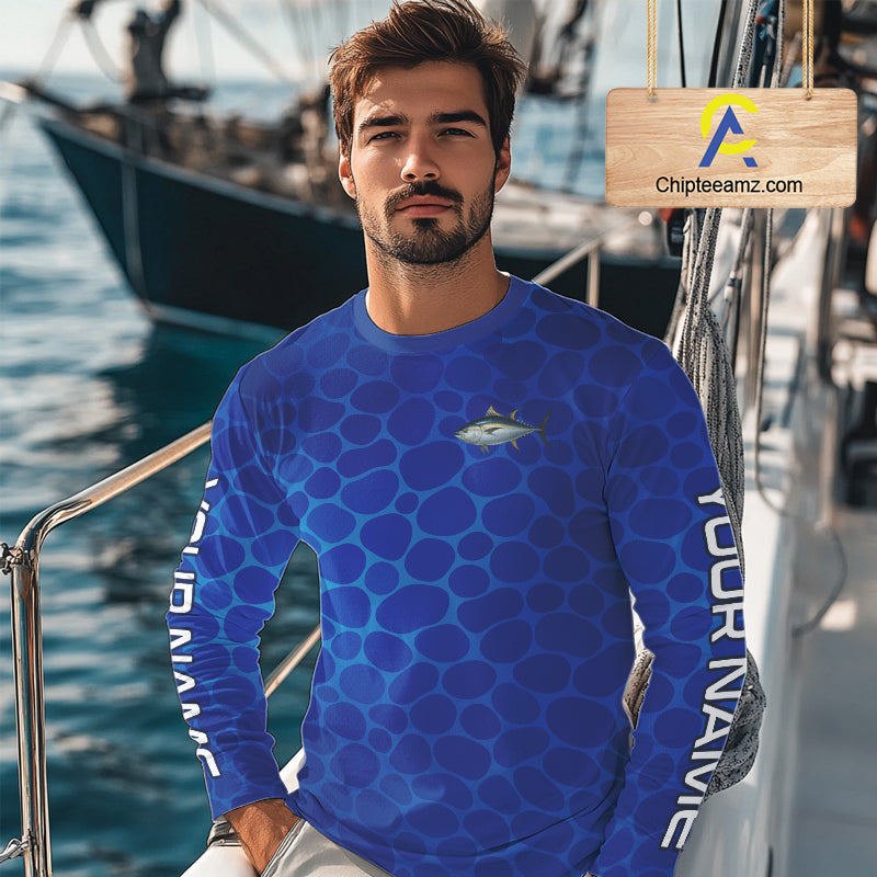 Blue Sea Camo Tuna fishing shirts custom name saltwater Tuna fishing sun protection fishing apparel NQS10054