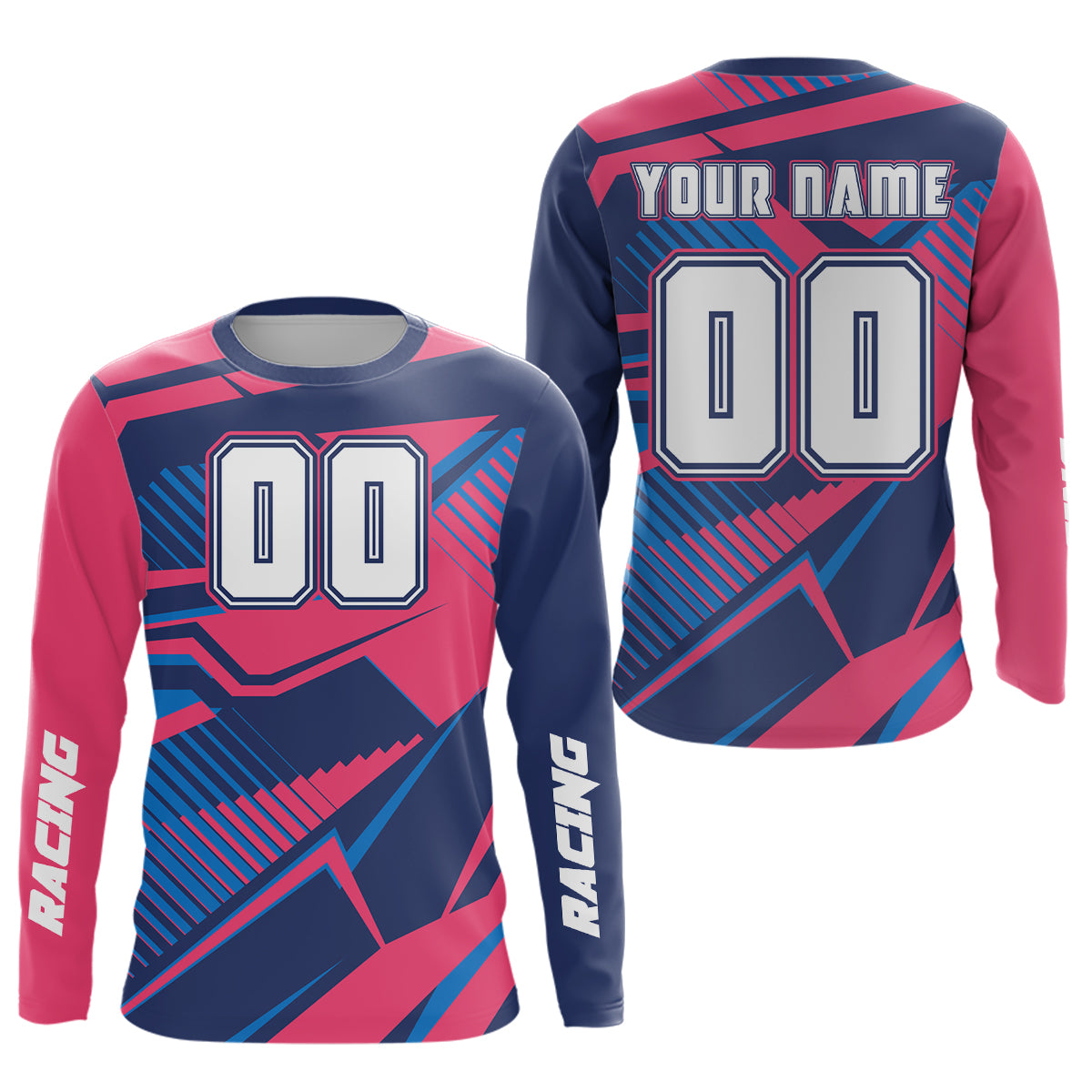 Bue and Pink Motocross Jersey Custom Dirt Bike Jersey for Women Men Kid Upf30+ XM360