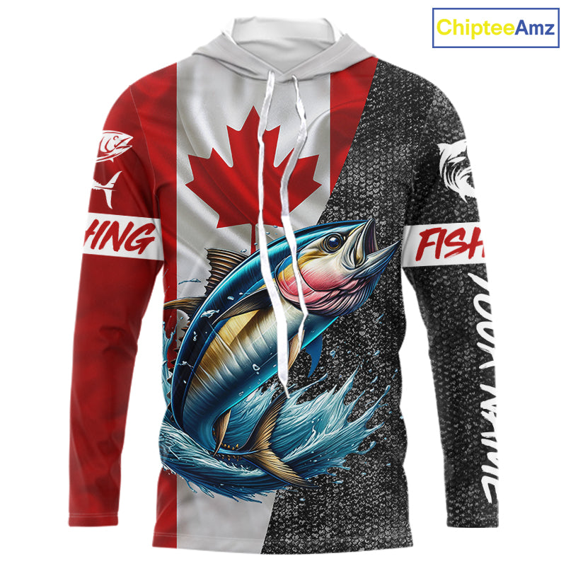 Canadian Flag Tuna Fishing Custom long sleeve performance Fishing Shirts, Tuna Fishing jerseys NQS9967