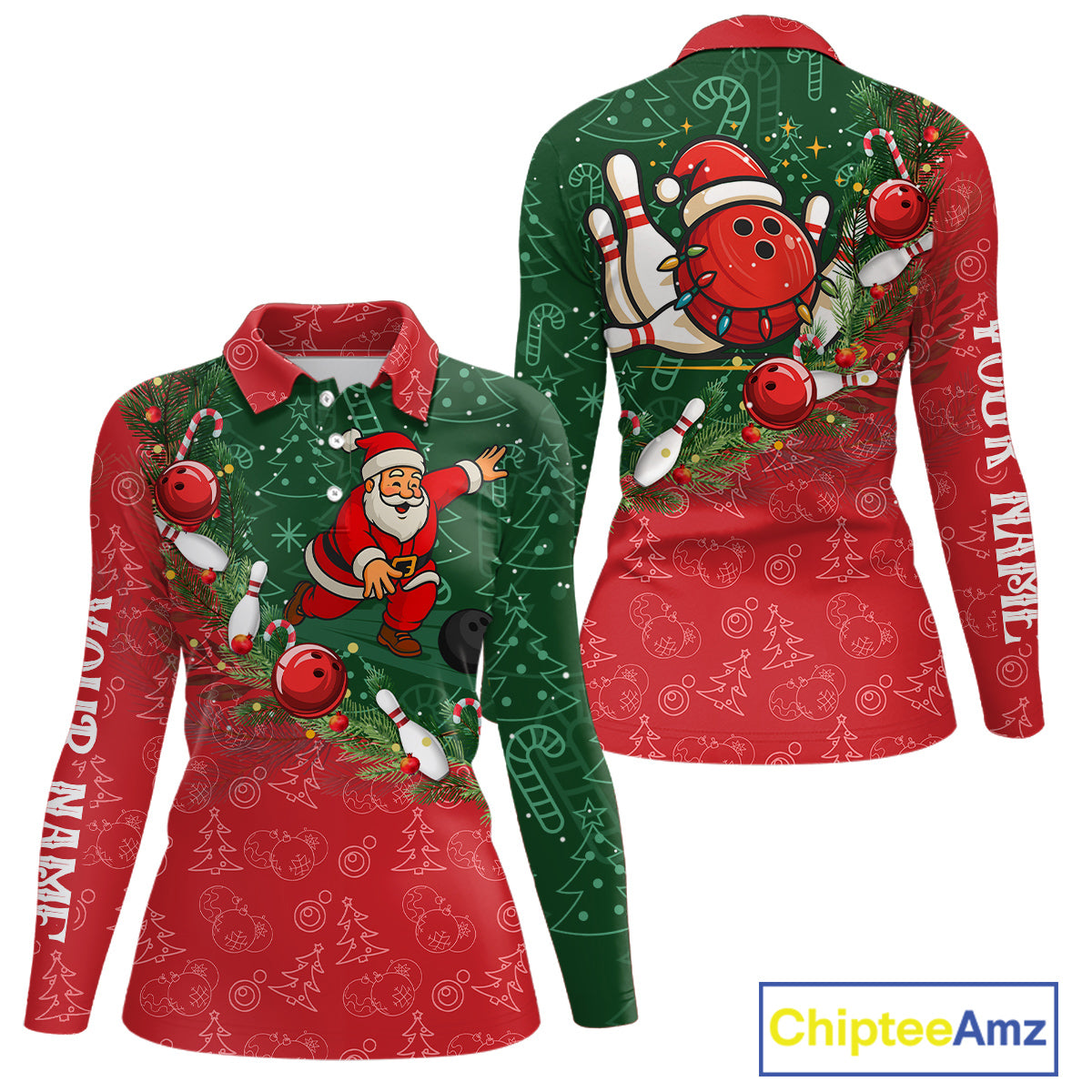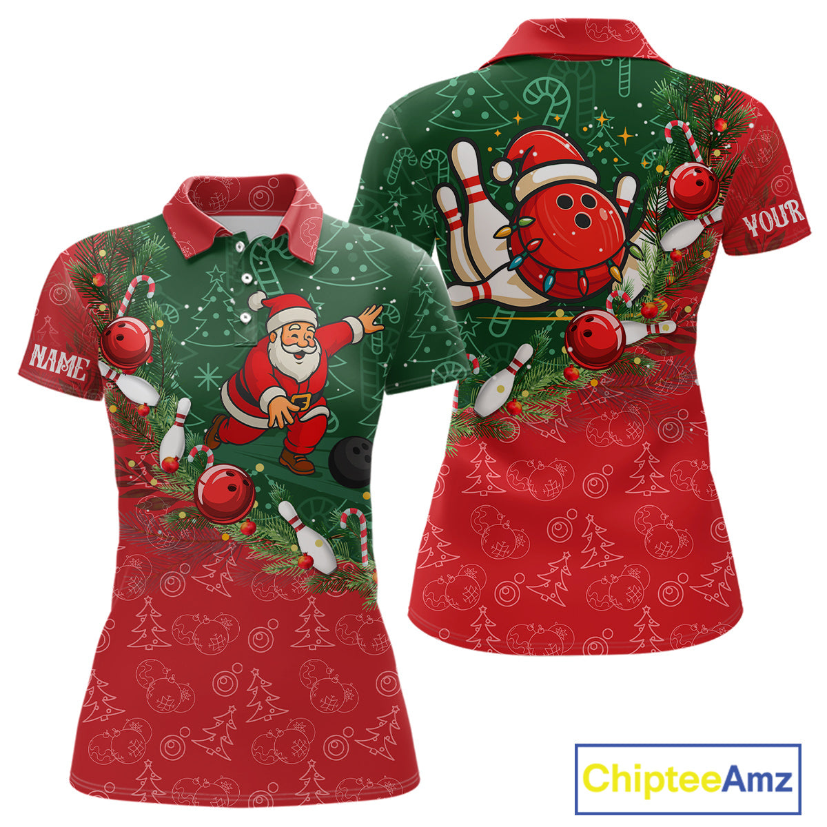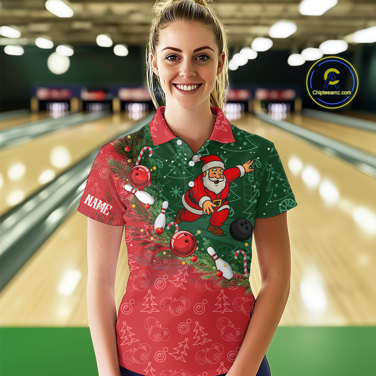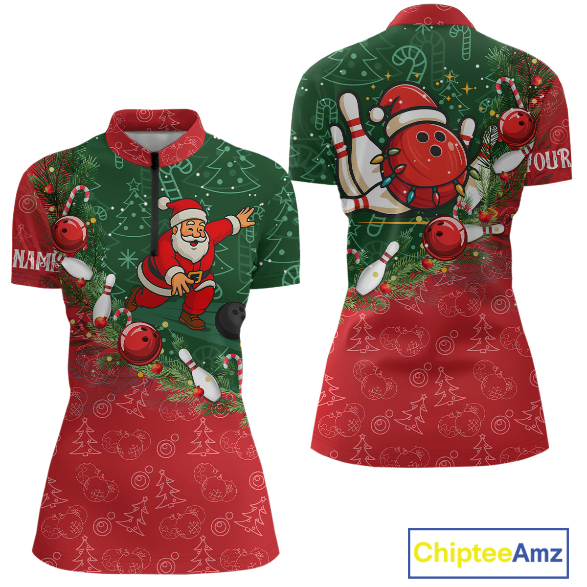Christmas Santa Women Bowling Polo, Quarter Zip Shirt Custom Christmas Team Bowling outfit For Ladies NQS10342