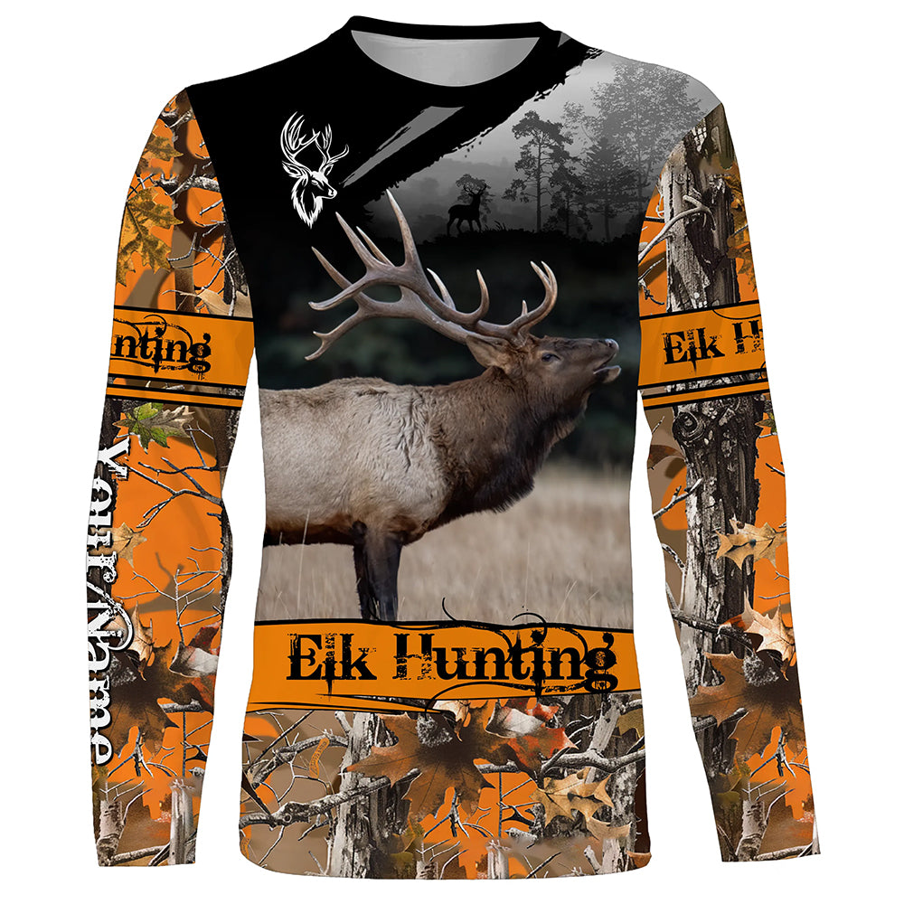 Elk hunting orange camouflage custom name shirts for hunters, Personalized elk hunting gifts FSD51