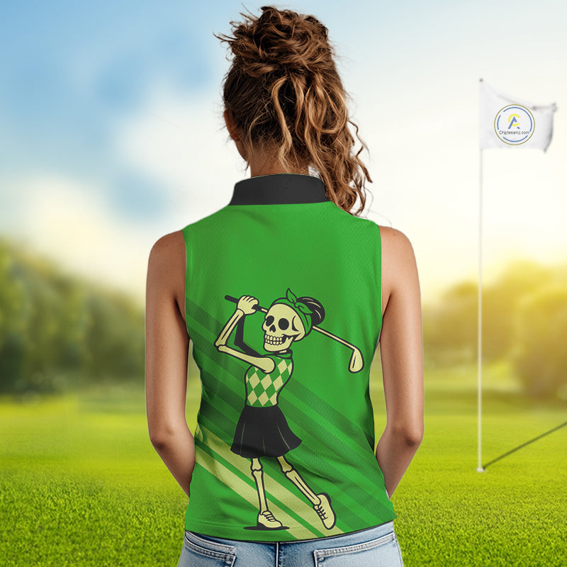 Funny argyle pattern Skull Sleeveless Polo Shirt Custom ladies golf attire, cool golf gift | Green NQS10655