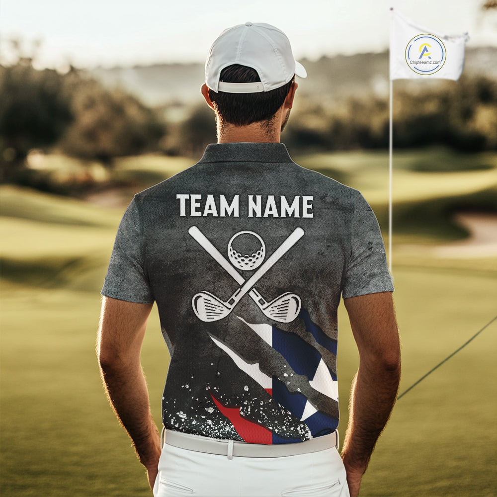 Gray Grunge Texas Flag Mens golf polo shirts Custom patriotic Golf attire for men NQS10580