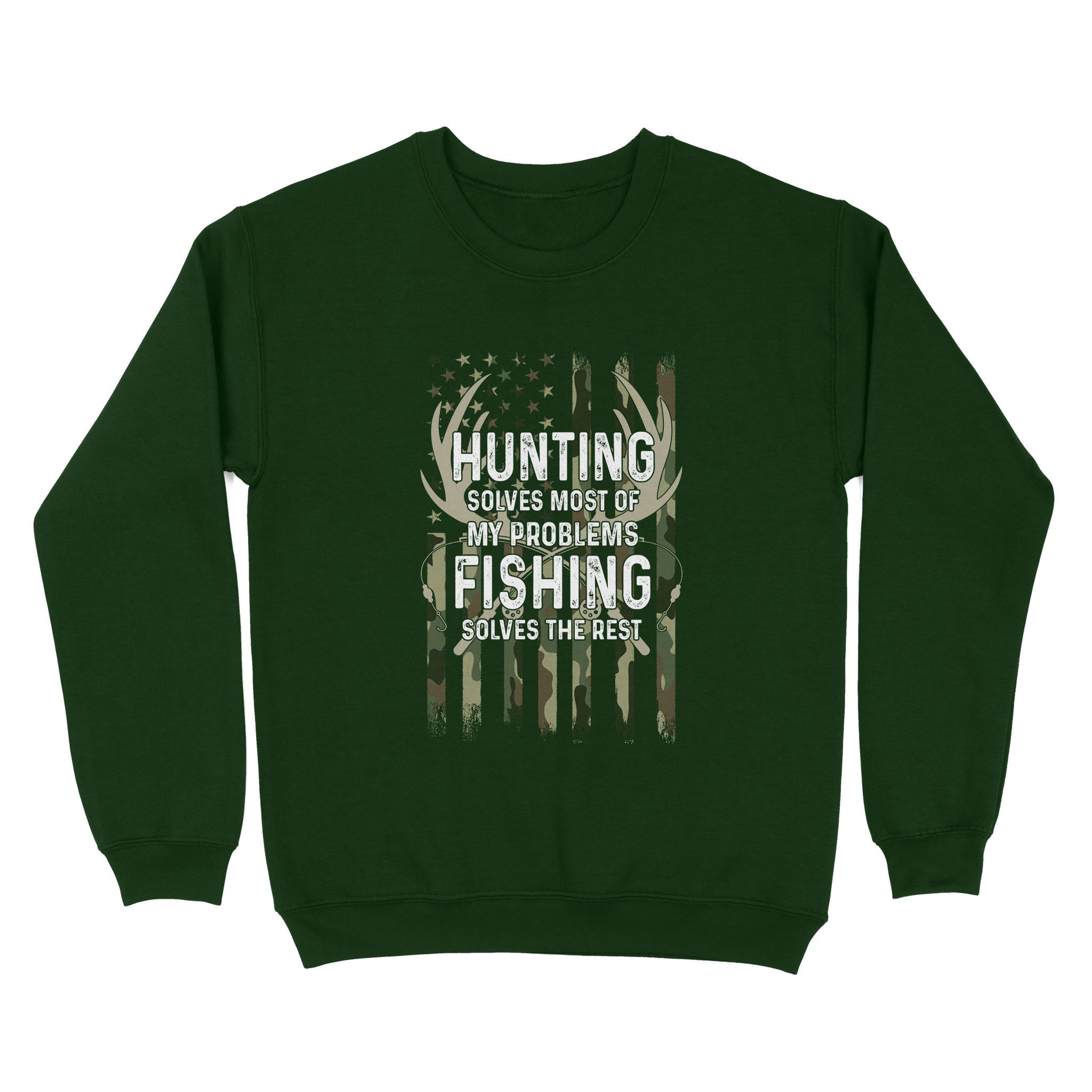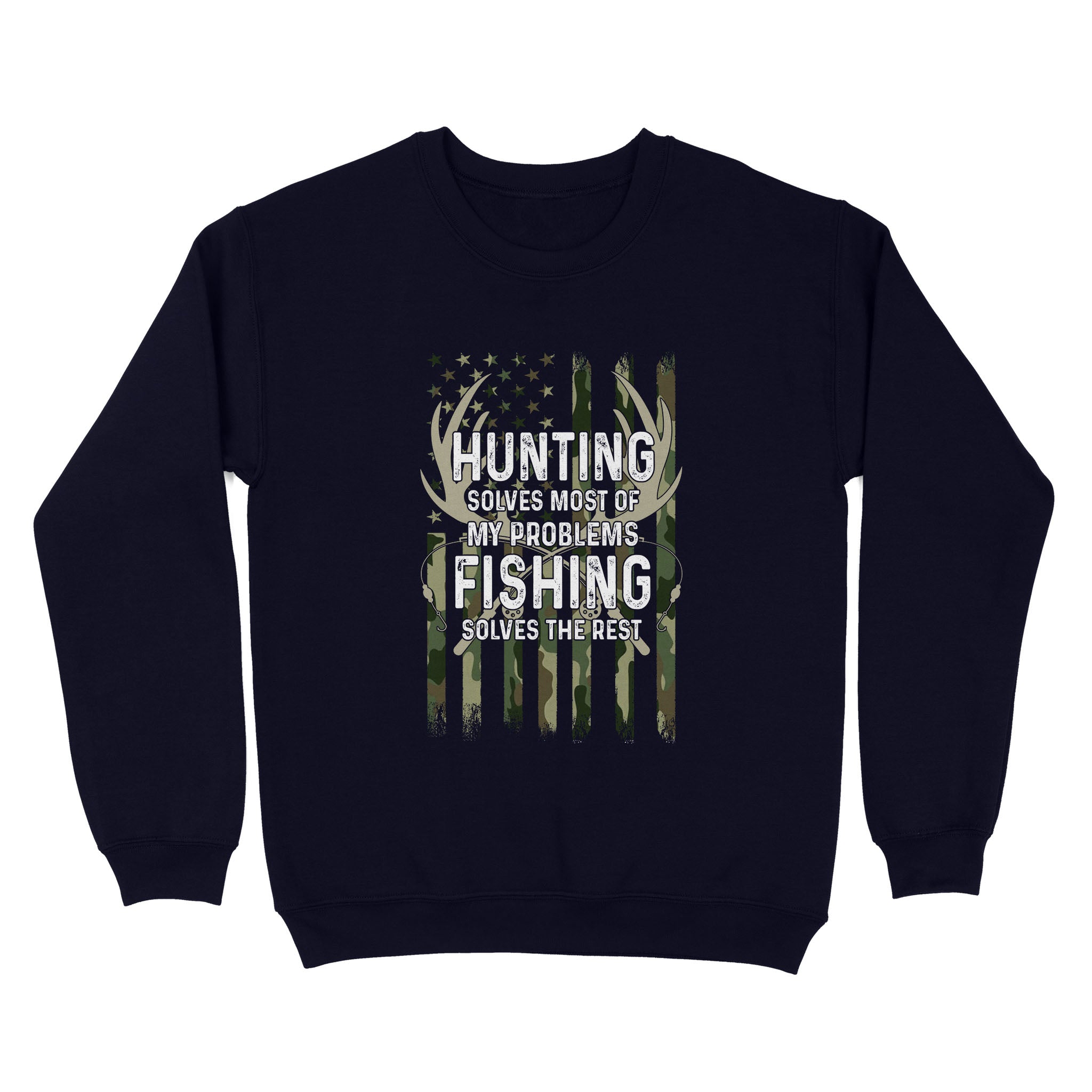 Hunting solves most of my problems, fishing solves the rest camo American flag D01 NQS3034 Sweatshirt